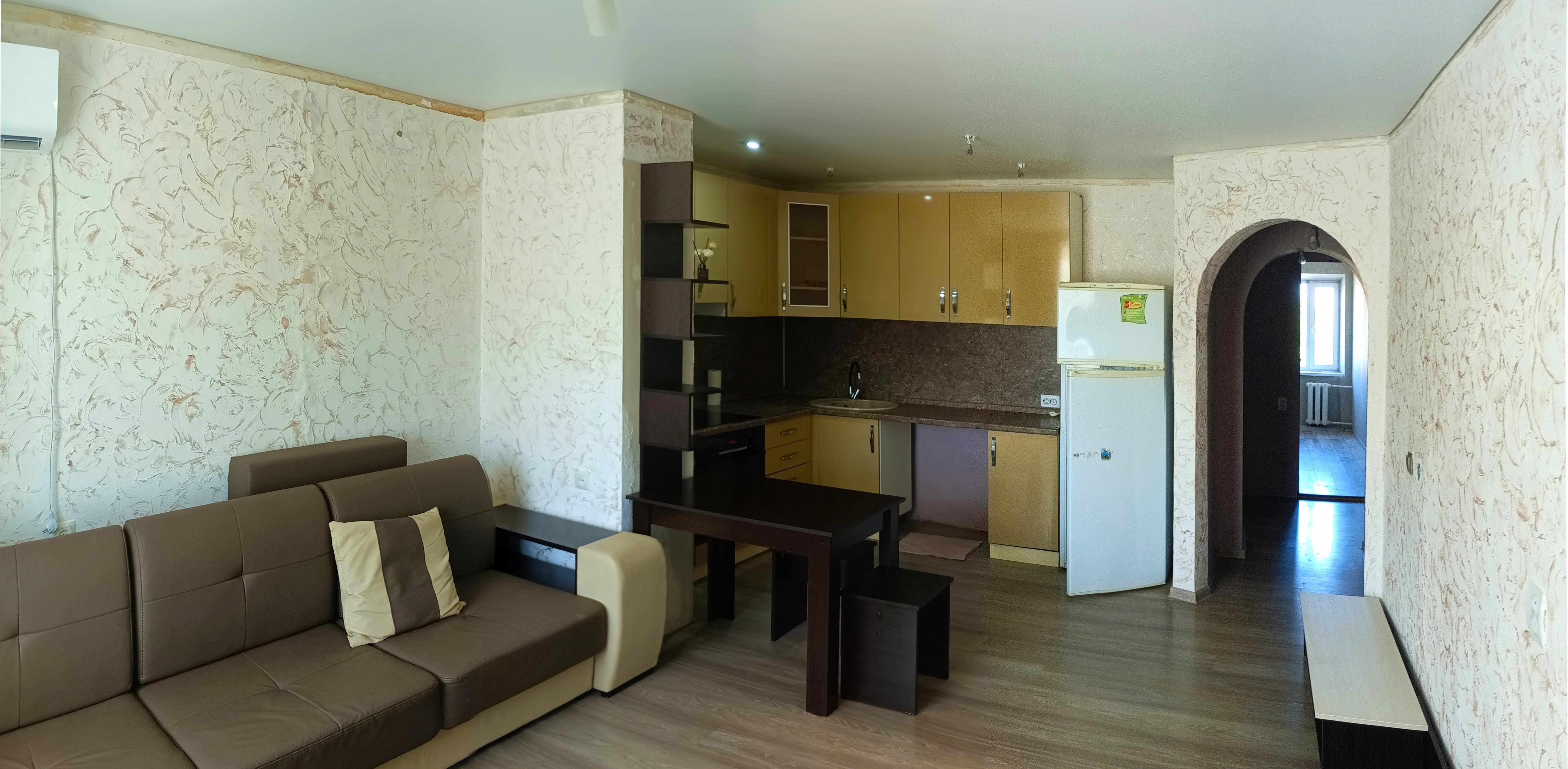 Трёхкомнатная квартира в доме гостиничного типа в центре города. Все комнаты раздельные, кухня совмещена с залом. Совмещенный санузел, электрический бойлер для горячей воды, пониженные тарифы на электричество.